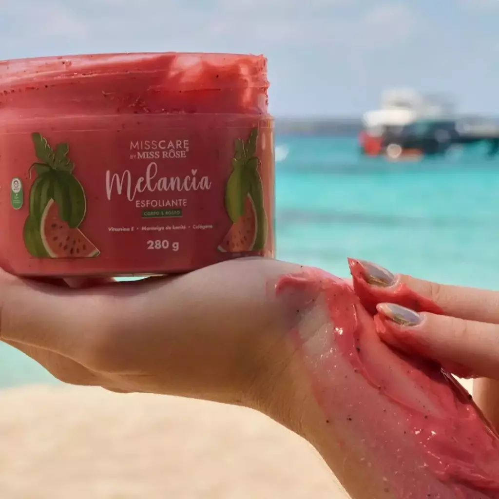 Se você busca uma pele lisinha, saudável e radiante, o Esfoliante Corpo e Rosto Melancia Miss Care é a escolha ideal para a sua rotina de cuidados! Com 280g de puro frescor e eficiência, este esfoliante da Miss Rôse é indicado para todos os tipos de pele e pode ser usado tanto no rosto quanto no corpo, proporcionando uma limpeza profunda e suave ao mesmo tempo. ✨💧