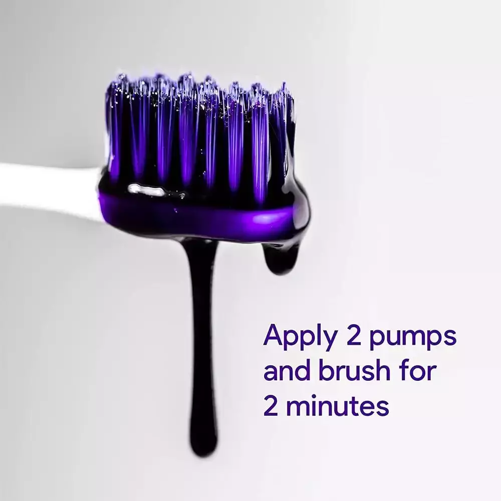 Fórmula com corretor de cor violeta que neutraliza tons amarelados nos dentes, promovendo um brilho instantâneo.